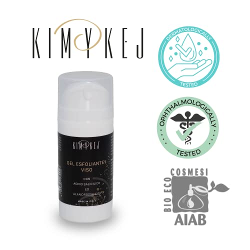Kimykej - Crema Viso Uomo, Gel Esfoliante Viso Uomo con Acido Salicinico, Effetto Illuminante e Rigenerante, Adatta a Pelli Mature, Azione Anti-age, 1 o 2 volte a Settimana Pre Rasatura - 100 ml