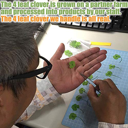 KIN-HEBI Vero trifoglio a quattro foglie, gettone tascabile di buona fortuna, conservato, 3.2 cm, Incluso oggetto a croce in metallo (Oro)