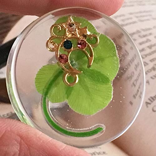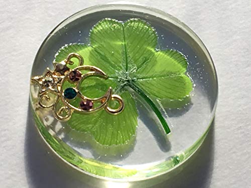 KIN-HEBI Vero Trifoglio a Quattro Foglie, gettone Tascabile di buona Fortuna, conservato, 3.2 cm, Compreso Ornamento in Metallo (Notte di Luna)