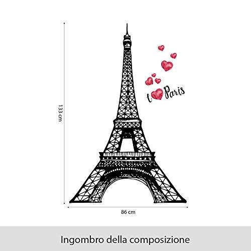 Kina CD0025 Adesivo murale Arredo Casa Wall Art - I Love Paris - Misure 133x86 cm - Decorazione Parete, Adesivi per Muro, Carta da Parati