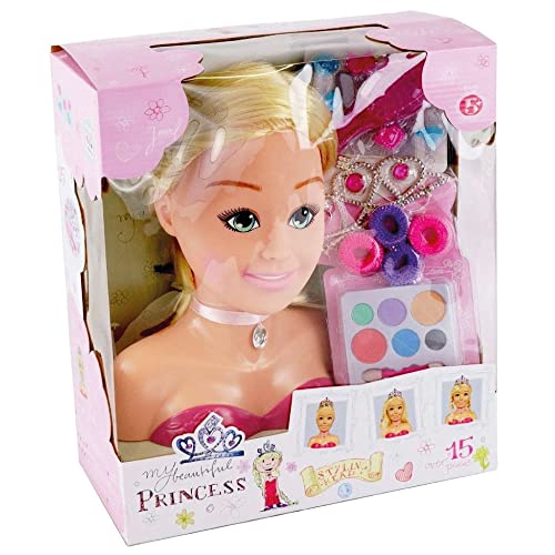 Kina PRIN001 My Beautiful Princess Testa Grande da pettinare Gioco Bambina 6+ con 15 Accessori per Le Acconciature Trucchi e spazzole