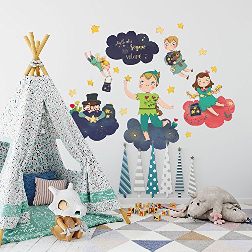 Kina - R00442 Adesivi Murali Bambino Ecologici e Anallergici Soffice Effetto Tessuto Riposizionabile Favola Peter Pan Decorazione Muro Cameretta Asilo Nido Carta da Parati - Misura 120x30 cm