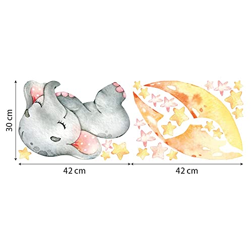 Kina R00584 Adesivi Murali Bambino Ecologici e Anallergici Soffice Effetto Tessuto Riposizionabile Elefantino sulla Luna Decorazione Muro Cameretta Asilo Nido Carta da Parati - Misura 42x30 cm
