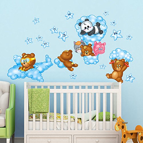 Kina RCC0025 Adesivo murale per Bambini Wall Art - Orsetti viaggiatori - Misure 120x30 cm - Decorazione Parete, Adesivi per Muro, Carta da Parati