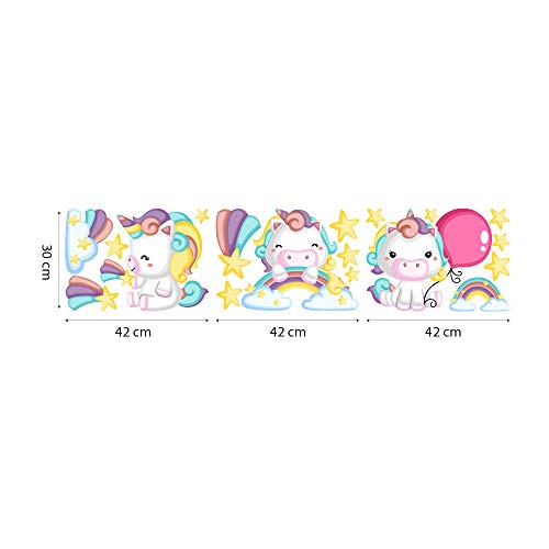 Kina - UVB00549 Adesivi Murali Cameretta Bambino stampati su PVC Trasparente Decorazione Unicorni Arcobaleni Muro Asilo Nido - Misura Tre fogli 40x30 cm