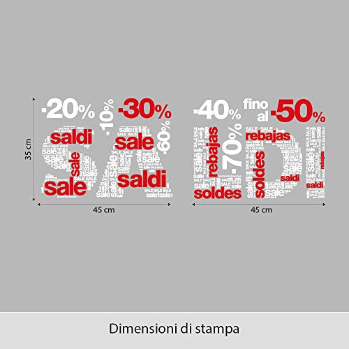 Kina UVSD0189 Vetrofania Trasparente Removibile Riposizionabile per vetri finestre Vetrine Negozi Adesivi Saldi Estivi Invernali Sconti Occasioni 2 Fogli 45x35 cm