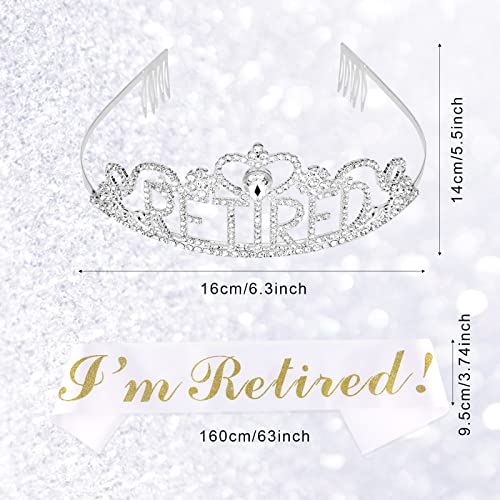 KINBOM 1 Set Corona e Fascia per Pensione, Ufficiale Glitterati Corona Strass per Pensione e Fascia per Pensione Decorazioni per Feste di Pensionamento per Donne (Argento, Bianco, Dorato)