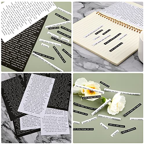 KINBOM 8 fogli Adesivi con Frasi, Adesivi per Album Vintage Adesivi con Frasi Scrapbooking per Album di Quaderni Collage Diario di Scrapbooking Fai Da Te (Nero, Bianco)