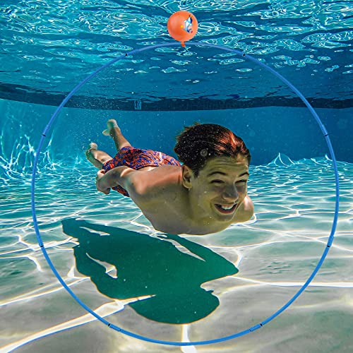 KINBOM 2 Set Giocattoli da Piscina per Bambini, Pool Ring Anelli da Piscina Anelli da Nuoto Subacqueo con 2 Palline e 1 Pompa, Swimming Pool Toys per Adulti Bambini, 5-12
