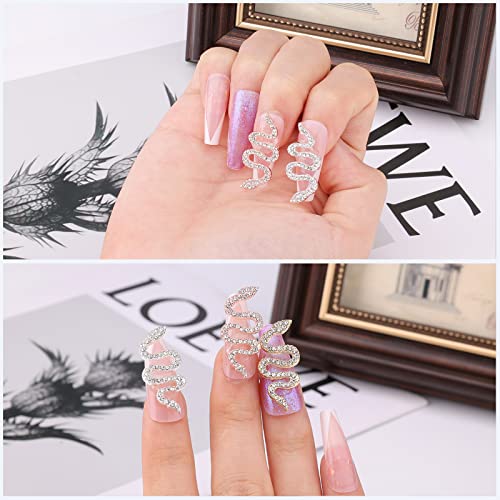 KINBOM 12 pez. Nail Art Charms con Serpente, Lega Vintage Ciondoli per Unghie 3d Nail Art Decorazioni 3d Strass e Diamanti in Metallo Gioielli per Nail Art Decorazioni (Oro, Argento, Oro Rosa)