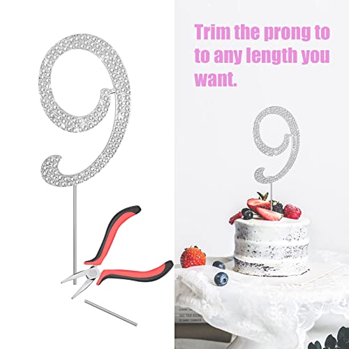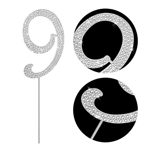 KINBOM Numero Cake Topper, 10cm Numeri Cake Toppers, Glitter Metallici Cake Topper Strass per Feste Anniversario Compleanno Matrimonio Bling Decorazioni per Torte (Argento, 9)