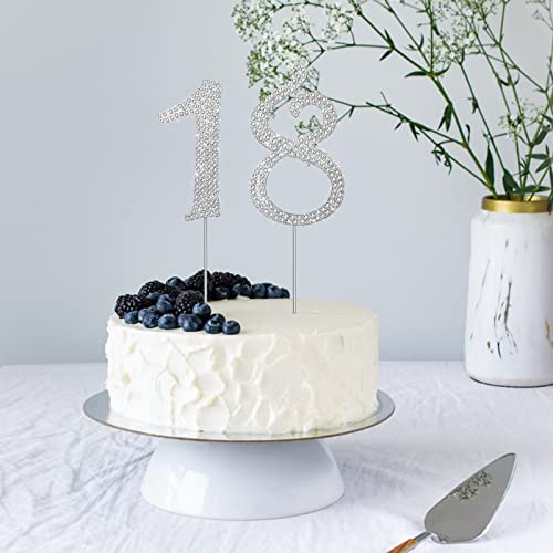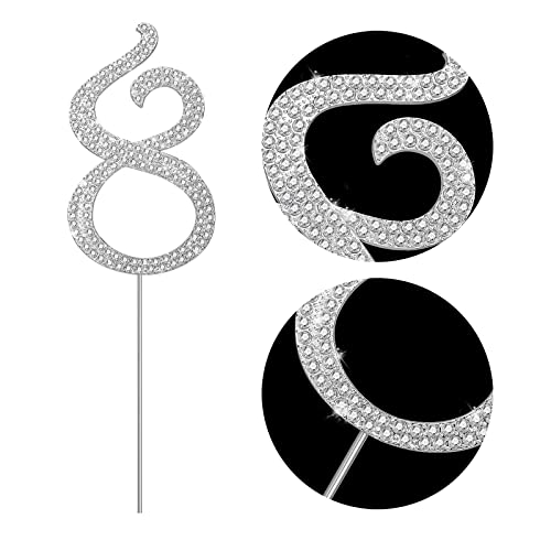 KINBOM Numero Cake Topper, 10cm Numeri Cake Toppers, Glitter Metallici Cake Topper Strass per Feste Anniversario Compleanno Matrimonio Bling Decorazioni per Torte (Argento, 8)