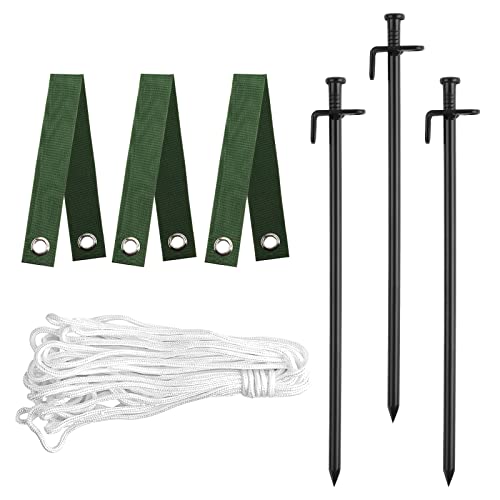 KINBOM 7 Pezzi Kit di Ancoraggio per Alberi, Inclusi 3 Pezzi Picchetto Albero in Acciaio 3 Pezzi Cinghie per Picchetti e 10 m/32,8 Piedi Corda di Ancoraggio per Alberi Giovani Contro le Intemperie