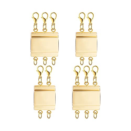 KINBOM 4 Pezzi Chiusura Multifilo Collane, Separatore di Collana Magnetico per Stratificazione Connettore Multifilo per Gioielli per Braccialetti per Collana a Strati Creazione di Gioielli (Oro)