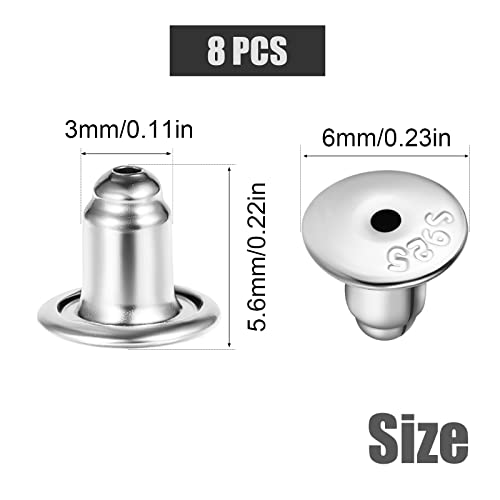 KINBOM 8 Pezzi Chiusure per Orecchini a Perno, Ferma Orecchini Argento Sterling 925 Ipoallergenici Tappi per Orecchini per Borchie Ganci per Orecchini (Oro Bianco 18K)