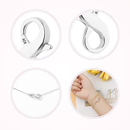 Materiale premium: le doppie chiusure a moschettone sono realizzate principalmente in argento sterling 925 di alta qualità e la parte a molla è in ferro, liscia, lucida, robusta e non facile da rompere o arrugginire, fornendo una lunga durata.