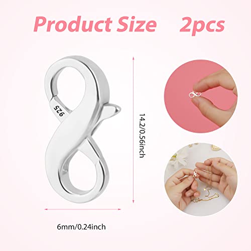 KINBOM 2 Pezzi Moschettone a Doppia Chiusura, Chiusura a Moschettone Argento Sterling 925 Chiusura per Braccialetto Connettori per Collana per Fai Da Te Gioielli Creazione e Riparazione (14,2mm)