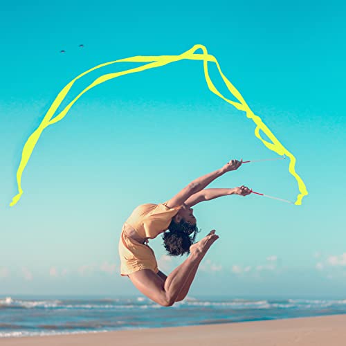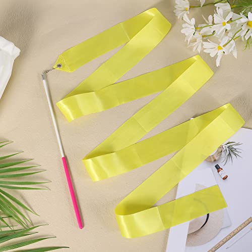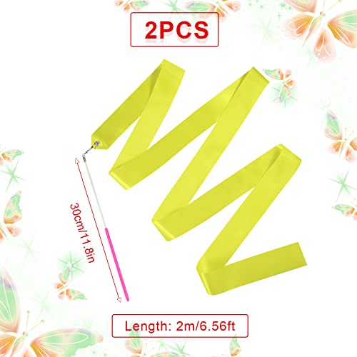 KINBOM 2 Pezzi Nastri da Danza, 2 m Nastro da Ginnastica Ritmica per Bambini Ribbons Dance per Festa Allenamento Danza Artistica, con Bacchetta da Ballerino a Nastro (Giallo Chiaro)