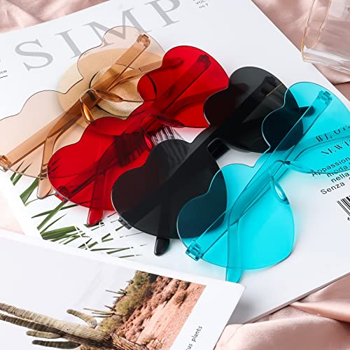KINBOM 4 Pezzi Occhiali a Forma di Cuore, Colore Caramella Occhiali da Sole Senza Cornice Occhiali da Sole a Cuore per Ragazze Festa di Compleanno (nero, marrone chiaro, rosso, verde)