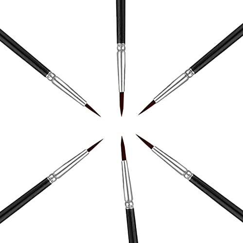 KINBOM 6 Pezzi Set di Pennelli per Dettagli Fini, Pennello a Punta Fine Kit di Pennelli Pittura Miniatura per Acquerello Acrilico Olio Viso Unghie Scala Modellini Pittura Disegno a Tratteggio (Nero)