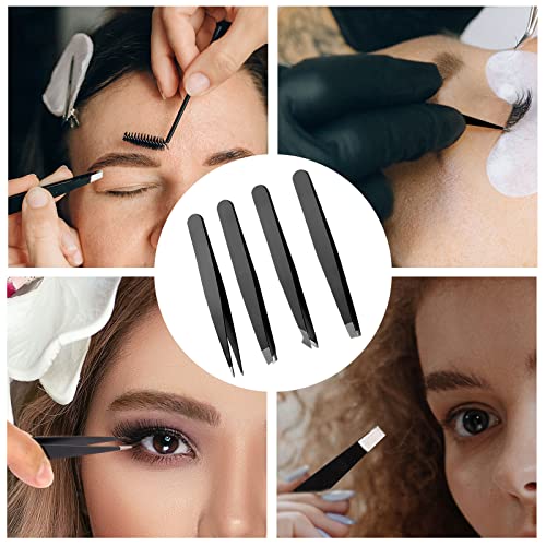 KINBOM 4 Pezzi Set di Pinzette Professionali, con Custodia in Pelle e Scatto Acciaio Inossidabile Pinzette di Precisione per Rimuovere Sopracciglia Peli Sul Viso Peli Incarniti Lavori Manuali