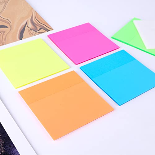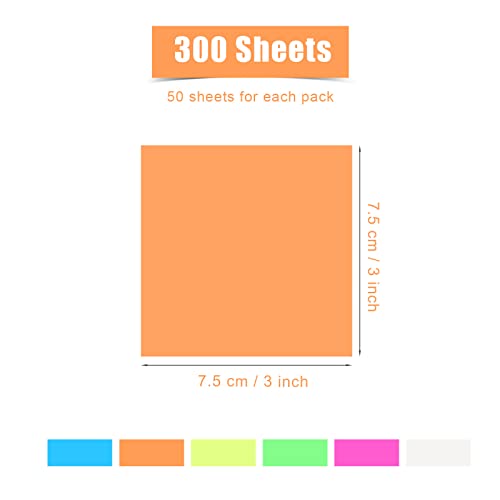 KINBOM 300 Pezzi/6 Pacchi Note Adesive Trasparenti, 3 x 3 Pollici Note Adesive Colorate, Blocco Note Adesivo per Elenchi di Cose da Fare, Studio, Promemoria Messaggi (6 Colori)