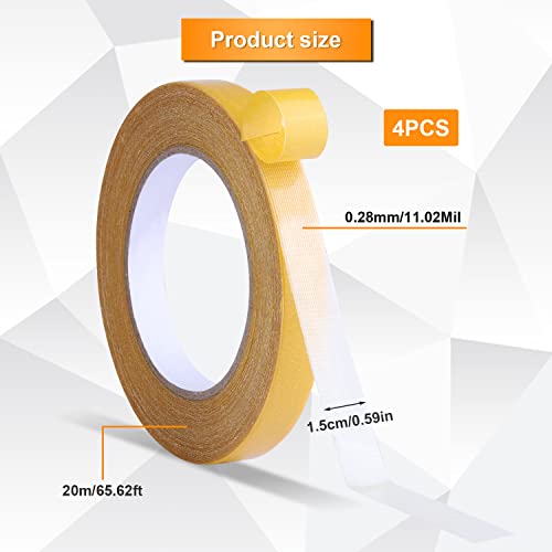 KINBOM 4 rotoli Nastro Biadesivo Resistente, 15mm x 20 m Nastro Biadesivo Super Resistente Nastro Biadesivo Trasparente Extra Forte Double Sided Adhesive Tape per Pareti, Facile Utilizzo