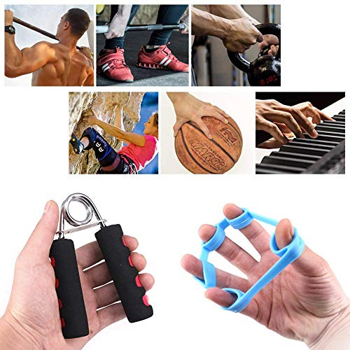 KIT PEFETTO PER RINFORZARE DITA E MANO -- La pinza a mano viene utilizzata per rinforzare la presa della mano, mentre le fasce di resistenza per dita sono utilizzate per esercitare gli estensori, kit perfetto per un esercizio di forza completo.