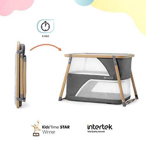 Kinderkraft Lettino da Campeggio SOFI, Culla 4 in 1, Pieghevole con una Mano, Materasso Morbido, per Bambini da 0-15 Kg, Grigio