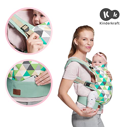 Kinderkraft Marsupio Neonati NINO, Ergonomico, Ventrale e Dorsale, Regolabile, per Bambini da 3 Mesi fino 20 Kg, Menta
