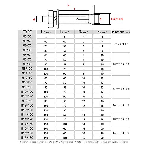 KINDOYO M8*100 Bulloni di Espansione - Vite di Espansione Esterno di Espansione del Bullone, M8*100/10 Pezzi
