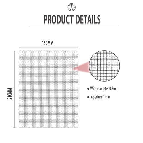 Dimensioni: I fogli di rete metallica sono compressi in pezzi dalla macchina e tagliati alla dimensione standard. Ogni foglio di rete metallica misura 15 x 21 cm/5,9 x 8,3 pollici, diametro del foro 1 mm, diametro del filo 0,3 mm.