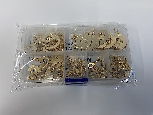 KINDPMA 150Pcs Capicorda Occhiello Elettrici M3 M4 M5 M6 M8 M10 Ottone Terminali a Crimpare ad Anello Isolanti Kit Faston ad Occhiello Assortiti per Audio Cavi Elettrodomestici Interrutore