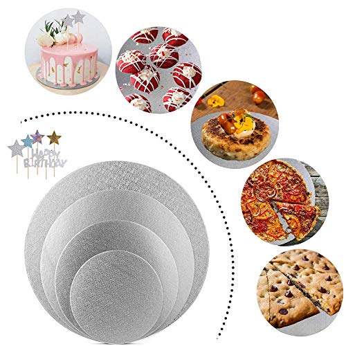 Alta qualità: sottotorta carta è realizzato in cartone rotondo, robusto e durevole, ricoperto da uno strato di pellicola di alluminio impermeabile e resistente all'olio, che può essere riutilizzato dopo la pulizia.