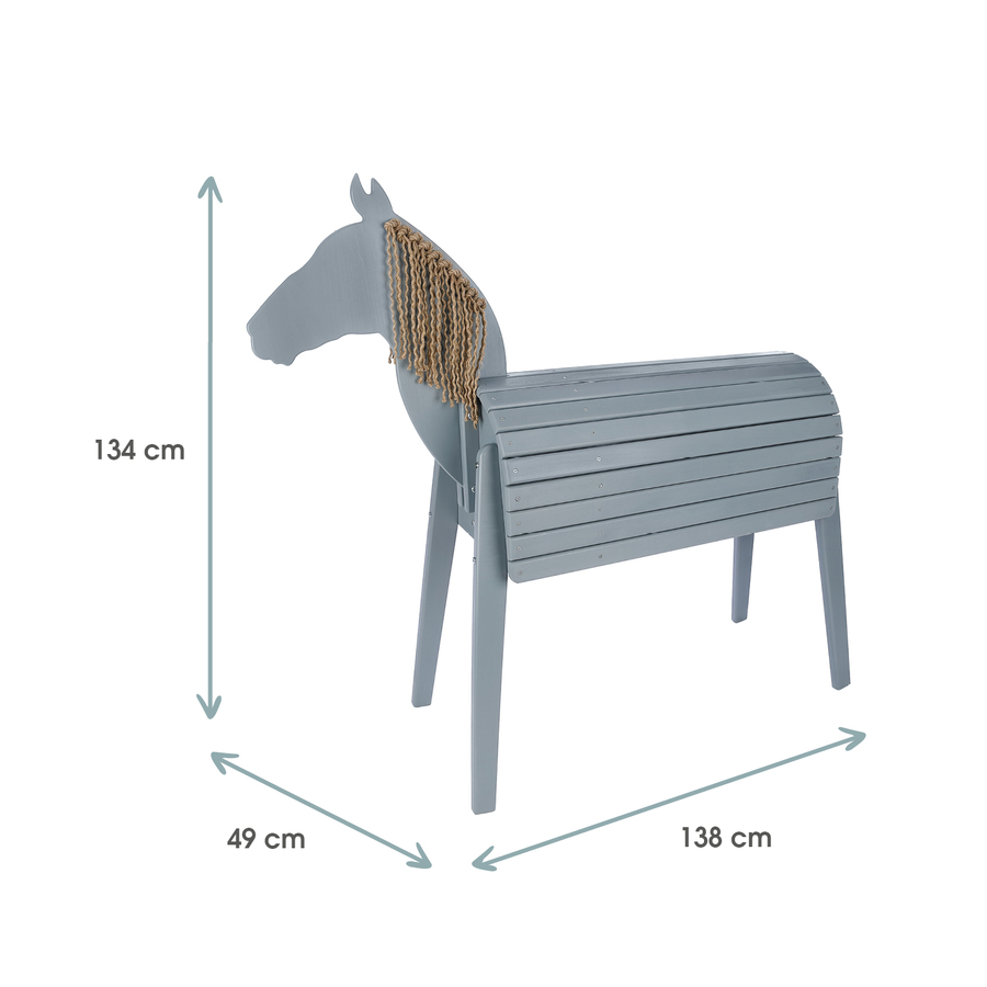 Dettagli del prodotto: Robusta attrezzatura da gioco per esterni: cavallo fisso di colore grigio ideale per il giardino Acconciature di tutti i tipi: criniera fissa e bella coda in sisal per lo styling e l'intreccio Sensazione di un reale cavallo: la testa può essere mossa su e giù Spazio aggiuntivo: gli accessori, come le cavezze o le selle, possono essere riposti al sicuro dalle intemperie all'interno del corpo allentando due viti sul collo Utilizzo versatile: l'attrezzatura da gioco all'aperto è adatta per arrampicarsi, cavalcare, fare volteggi e ginnastica in giardino Incoraggia l'immaginazione: i bambini possono sviluppare idee creative e provare nuovi modi di cavalcare Facile da montare: il corpo viene consegnato preassemblato Età: adatto a partire da 3 anni Dimensioni e peso: 138 x 134 x 49 cm (larghezza x altezza x profondità). Peso: 20 kg Materiale e cura: Materiale: legno massiccio di tiglio Il cavallo è già assemblato e può essere utilizzato immediatamente all'esterno Incluso nella consegna: 1x cavallo da giardino Attenzione: gli accessori e le decorazioni non sono inclusi nella fornitura Avvertenze e istruzioni di sicurezza: Non adatto a bambini di età inferiore a 3 anni Utilizzare solo sotto la supervisione di un adulto Coprite il cavallo durante la notte, perché animali come scoiattoli o uccelli amano mangiare la schiena, la coda o la criniera
