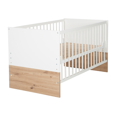 Dettagli del prodotto: Il lettino cresce con il tuo bambino: con le sponde di conversione disponibili separatamente, la culla può essere trasformata rapidamente in un letto Junior La posizione superiore del lettino regolabile in altezza in 3 posizioni è particolarmente comoda per sollevare il tuo bambino dal letto I tre pioli di scorrimento rimovibili permettono al tuo bambino di entrare e uscire in sicurezza Dimensioni e peso: Superficie di riposo: 70 x 140 cm (larghezza x profondità) Dimensioni da montato: 81,5 x 142 x 78,5 cm (larghezza x profondità x altezza) Livelli di altezza: 20 cm, 30 cm e 43 cm Materiale e cura: Materiale: MDF Materiale maniglie: legno massiccio Colore: bianco/legno Decoro: quercia artigianale Incluso nella consegna: Lettino duo Attenzione: la decorazione, il materasso e le pareti di conversione non sono inclusi nella consegna