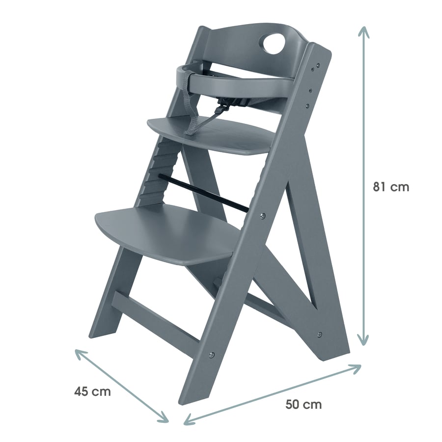 Dettagli del prodotto: Safety First: Particolarmente stabile grazie alla struttura speciale e alla cintura di sicurezza a 3 punti che impedisce le cadute. Utilizzo a lungo termine: il sedile e il poggiapiedi possono essere adattati in modo flessibile alle esigenze e all'età del bambino. Trasporto sicuro: la maniglia per il trasporto integrata con una sola mano nello schienale garantisce un trasporto sicuro. Elementi di sicurezza rimovibili: La barra di sicurezza e l'imbracatura di sicurezza a 3 punti possono essere rimosse a seconda delle dimensioni del bambino. Ergonomia a tavola: il seggiolone è progettato ergonomicamente per una buona postura a tavola in famiglia Testato secondo la norma DIN EN 14988: soddisfa i requisiti di sicurezza per i seggioloni per bambini Età: adatto a bambini in grado di sedersi autonomamente Istruzioni di montaggio Materiale e cura: Materiale: 100% faggio massiccio Per la pulizia si consiglia di utilizzare un panno di cotone leggermente umido con acqua tiepida. Dimensioni e peso: Dimensioni: 45 x 81 x 50 cm (larghezza x altezza x profondità). Larghezza del sedile: 41 cm: Altezza massima del sedile: 55 cm (altezza della barra quindi 71 cm). Altezza dello schienale: 81 cm Peso: 5,3 kg Capacità di carico: fino a 75 kg La consegna include: 1x seggiolone con imbracatura di sicurezza a 3 punti e barra di sicurezza Attenzione: la decorazione non è inclusa