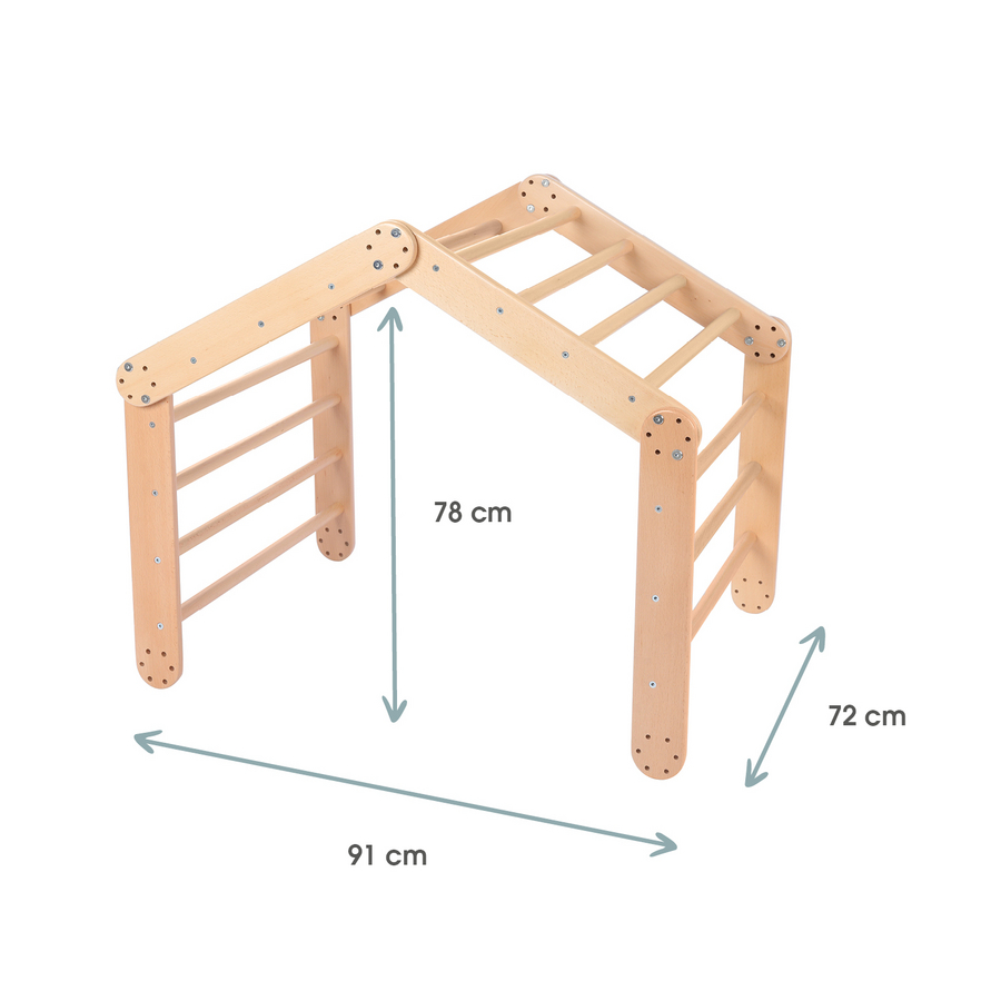 Dettagli del prodotto: Con te, per te: Grazie al tuo feedback, ora con due pioli in più rispetto al modello precedente per un gioco ancora più divertente Supporto allo sviluppo: favorisce il gioco creativo, indipendente e fantasioso e allena il senso dell'equilibrio Possibilità di combinazione: può essere combinato in modo ideale con le nostre serie di klatre, come la nostra scala klatrebahn Multifunzionale: può essere allestito in molti modi diversi Sfida l'istinto del gioco: stimola in modo giocoso la voglia di muoversi e di superare i propri limiti Minimo ingombro: ripiegato è largo solo 29 cm Massima stabilità e sicurezza di ribaltamento: la superficie d'appoggio extra-large garantisce la migliore stabilità possibile Sicurezza prima di tutto: i bordi lisci e arrotondati garantiscono la massima sicurezza Blocco di sicurezza per bambini integrato: impedisce il ripiegamento involontario Nessun attrezzo necessario per il montaggio o il ripiegamento: è sufficiente allentare le due viti a sgancio rapido del blocco di sicurezza per bambini Facile da montare: le 4 parti laterali sono già completamente assemblate Età consigliata: adatto a partire da 24 mesi Istruzioni per l'uso Dimensioni e peso: Larghezza: 72 cm Larghezza x altezza x profondità: 91 x circa 78 x circa 72 cm Peso: 14 kg 16 pioli disponibili Capacità di carico: fino a 60 kg Materiale e cura: Materiale: legno di faggio massiccio cotto a vapore, il migliore e più resistente per i mobili e i giocattoli per bambini Il legno cotto a vapore è dimensionalmente stabile e protetto dalla muffa Verniciato in modo trasparente per un bellissimo aspetto naturale Per la pulizia, si consiglia di utilizzare un panno di cotone leggermente umido con acqua tiepida La consegna include: 1 x telaio da arrampicata Attenzione: la decorazione non è inclusa Avvertenze e istruzioni di sicurezza: Attenzione: utilizzare sotto la diretta supervisione degli adulti.