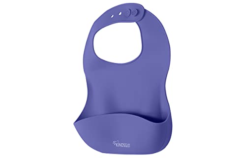 KINDSGUT bavaglio in silicone, tovagliolo rigido con tasca raccoglicibo, viola