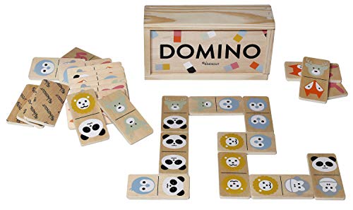 KINDSGUT Domino in legno, gioco di posizionamento per bambini e per i bambini più piccoli, bellissimi motivi di animali, animali