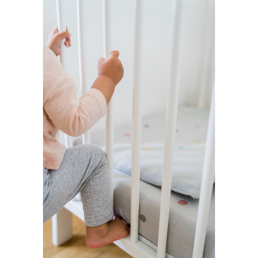 Il lenzuolo con angoli di Kindsgut ha una dimensione di 120 x 60 cm ed è quindi adatto ad ogni materasso a cassa di dimensioni standard. È fatto di 100% cotone certificato (Standard 100 di Öko-Tex®). Come risultato, il tessuto è piacevolmente morbido sulla pelle del vostro bambino ed è anche particolarmente traspirante. Potete lavare il lenzuolo con angoli da Kindsgut a 40 °C e asciugarlo nell'asciugatrice se necessario. L'elastico del lenzuolo con angoli lo rende particolarmente facile da usare. Dettagli del prodotto e istruzioni per la cura: Privo di sostanze nocive Semplice Design Materiale: 100% cotone Facile da curare Lavabile fino a 40 °C Asciugabiancheria Dimensioni 120 x 60 cm