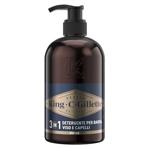 King C. Gillette DETERGENTE VISO UOMO 3 In 1, Sapone Barba, Viso E Capelli, Pulizia E Freschezza, Profumazione King C., Cura della Barba, Idea Regalo Uomo