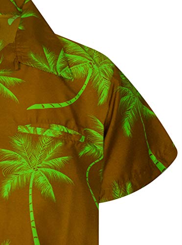 King Kameha - Camicia hawaiana da uomo a maniche corte, stile casual e alla moda, con bottoni, unisex, motivo con palme - marrone - XL