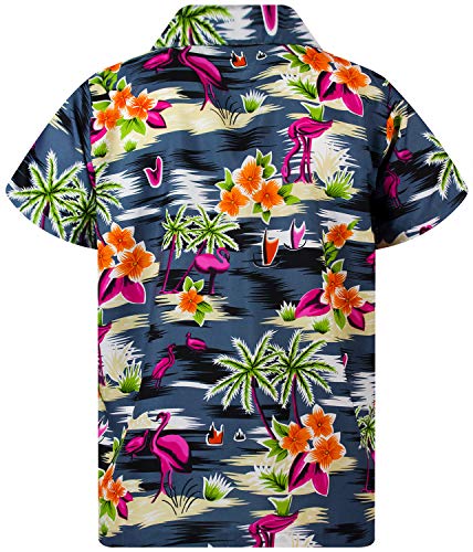 King Kameha Funky Camicia Hawaiana, Flamingo Melone, Nero, L