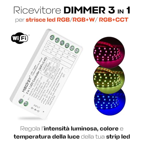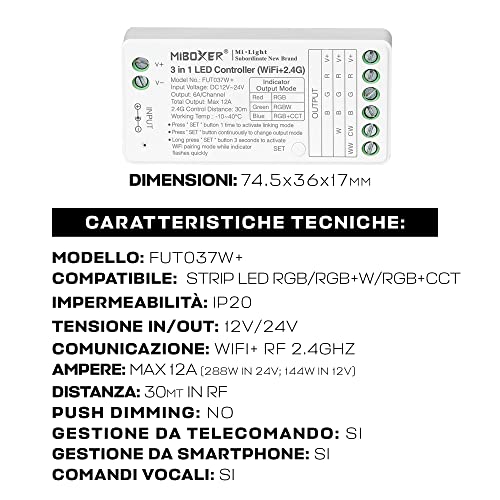 King Led - MiBoxer FUT037W+ Ricevitore SMART WIFI + RF per strisce led RGB RGB+W RGB+CCT multicolore per strisce led 12/24V - Controller con gestione da smartphone e assistente vocale