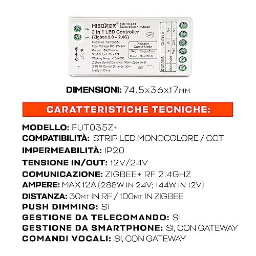 King Led - Mini Ricevitore ZigBee + RF Mi Light Mi Boxer FUT035Z+ (FUT035Z/FUT036Z) per Strip Led monocolore e dual white CCT - Compatibile con Dispositivi ZigBee 3.0, Necessità di Centralina.