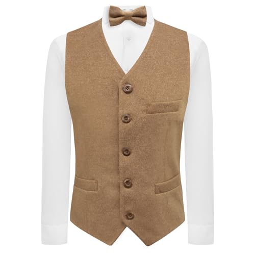 King & Priory Gilet di lusso in tweed Donegal marrone cammello, Marrone, M