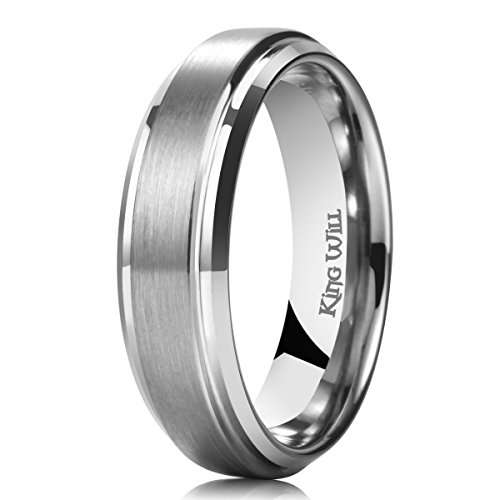 King Will BASIC - Fede da uomo in titanio da 6 mm, finitura spazzolata opaca, anello di fidanzamento, vestibilità comoda