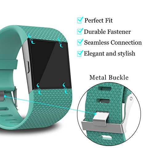 KingAcc, cinturino in silicone di ricambio per Fitbit Surge, unisex, colore: nero, blu, viola prugna, D# 1-Pack Teal, Small(5.4" - 6.5")