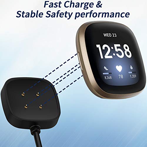 KingAcc Compatibile con Versa 3/Sense Caricabatterie, Ricambio Cavo di Ricarica USB Cavo Supporto Base Adattatore Graffetta per Cavo Caricabatterie per Versa3/Sense (3.3Piedi/1 Metro)